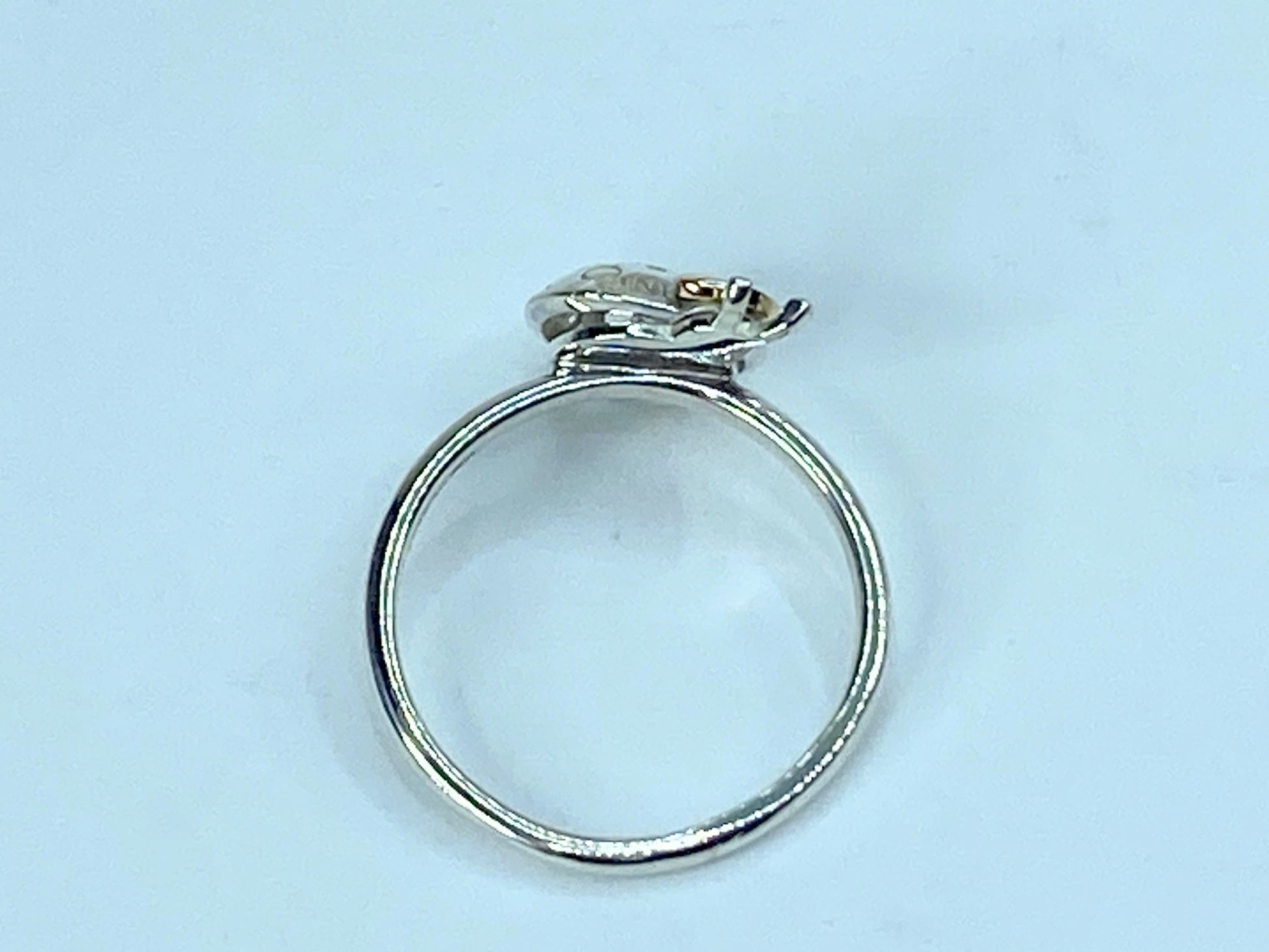 Discover elegance in this charming Tiffany & Co. ring, pairing timeless sterling silver with warm 18k rose gold accents. The design features a playful ladybug motif, offering a touch of whimsy balanced by refined craftsmanship. Signed or attributed to Tiffany & Co., this piece brings a luxurious yet approachable statement to any jewelry collection. Includes original box and pouch for safe storage and gifting.