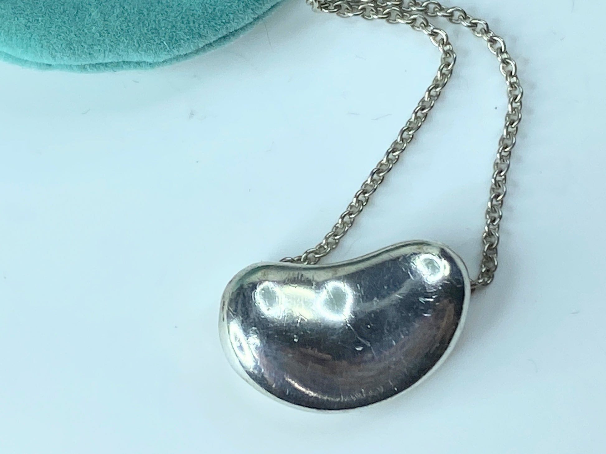 Authentic Tiffany & Co. .925 Sterling Silver Bean Pendant and Chain