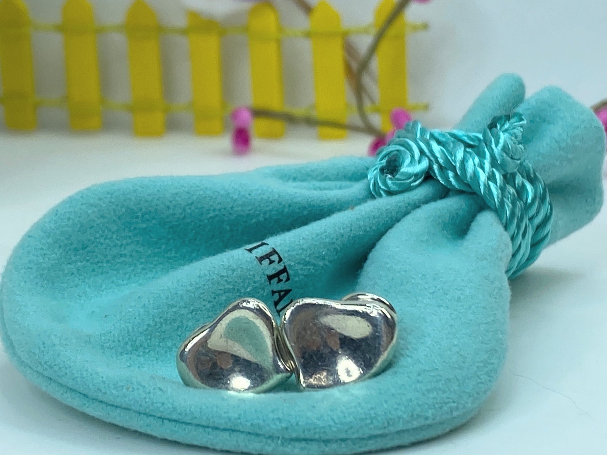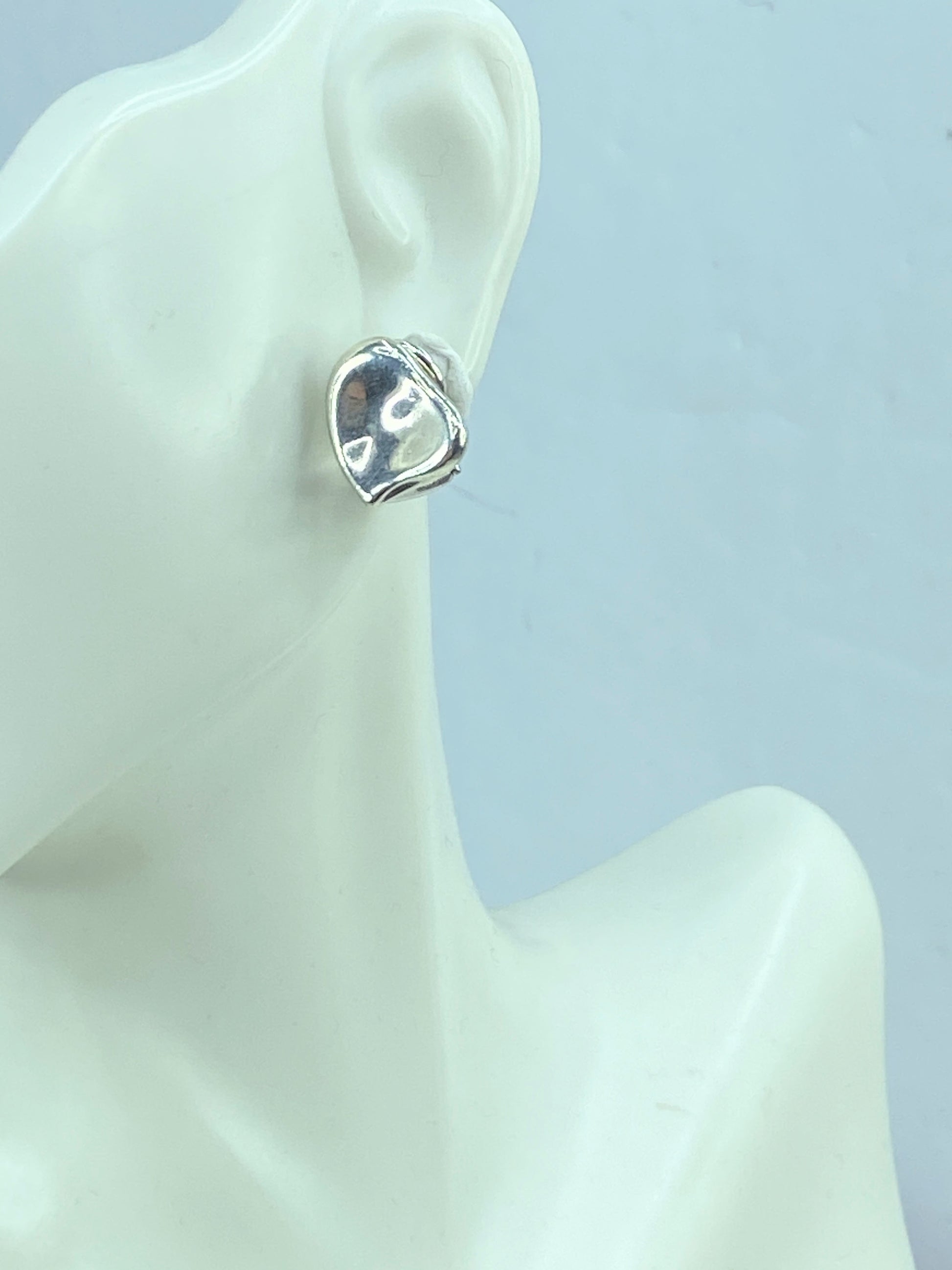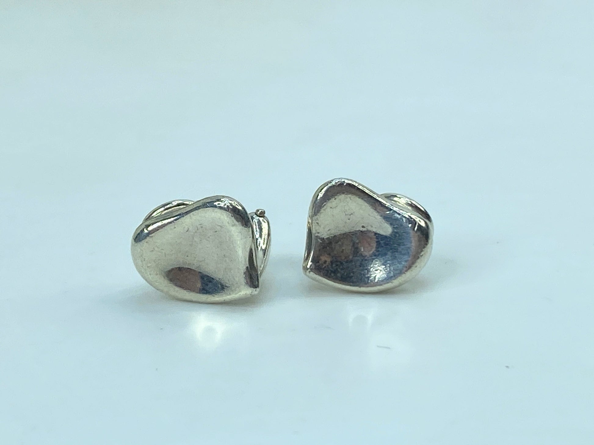 Tiffany & Co Sterling Silver Elsa Peretti Full Heart Stud Earrings 7.3g JR751