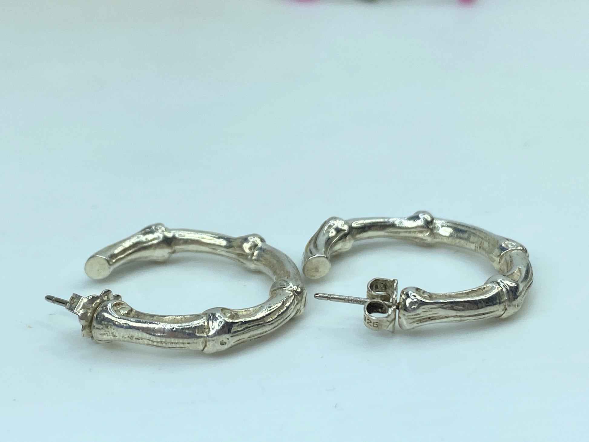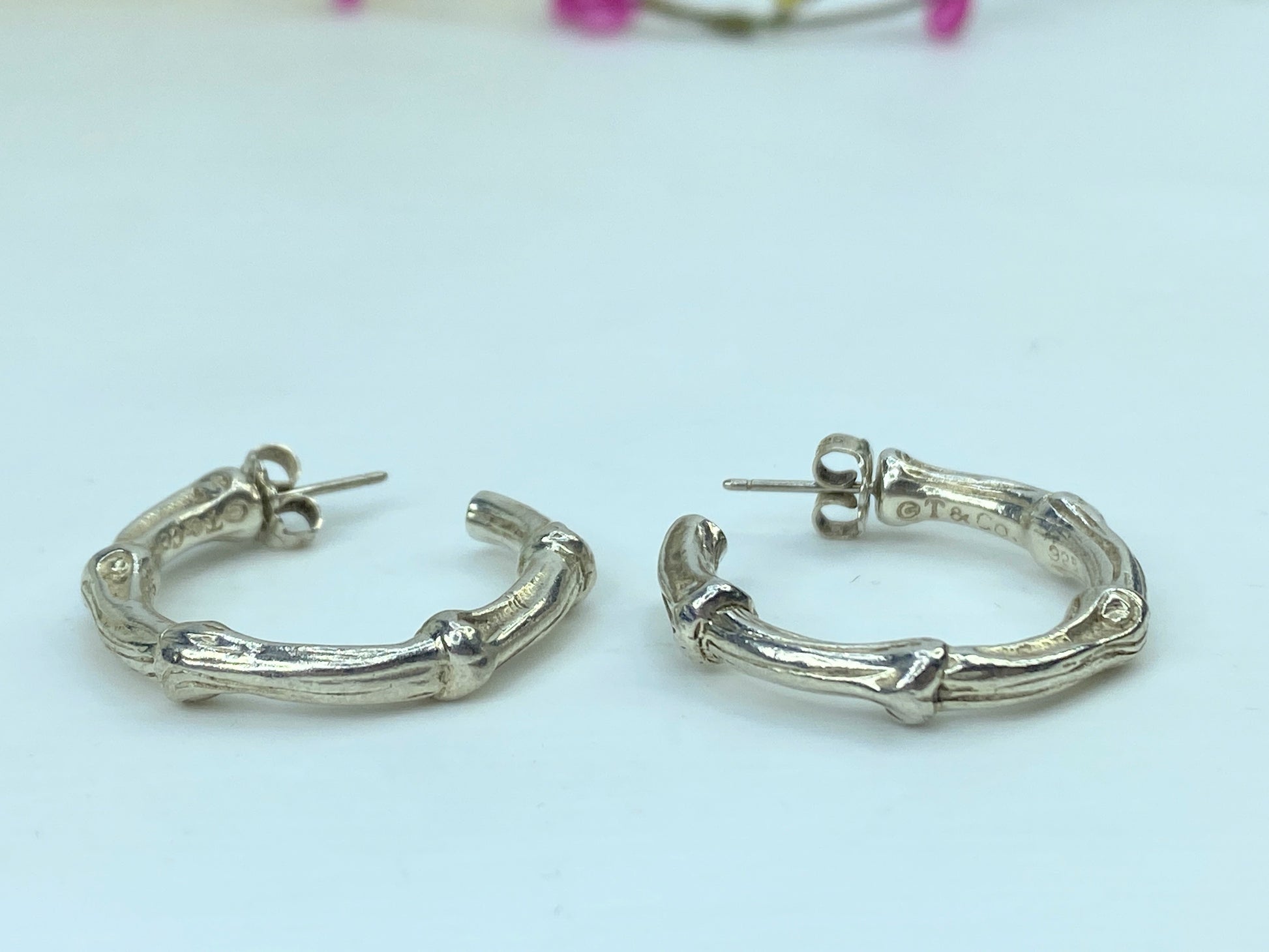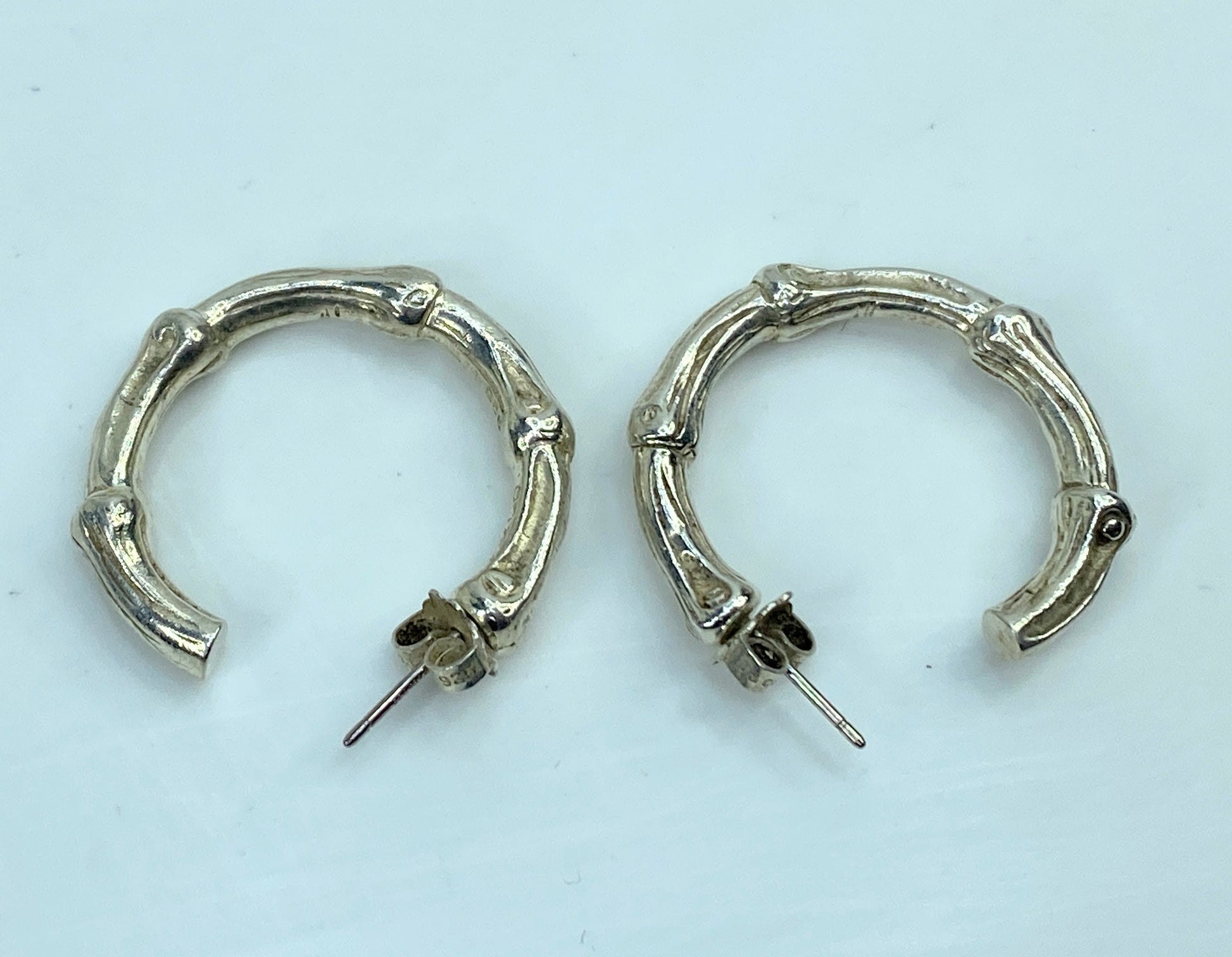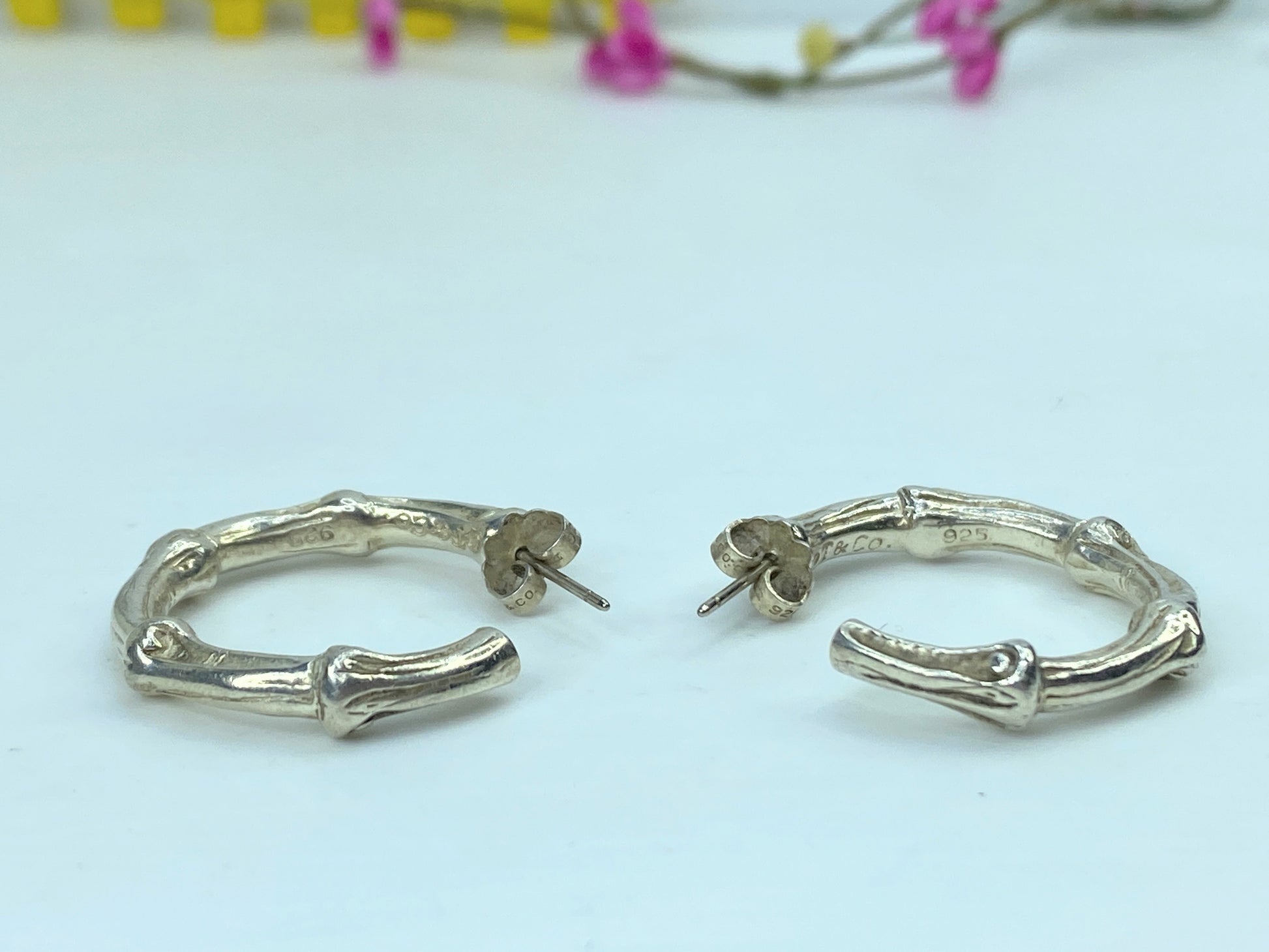 Tiffany & Co Sterling Silver textured Bamboo Earrings Hoops 1 1/8" JR750