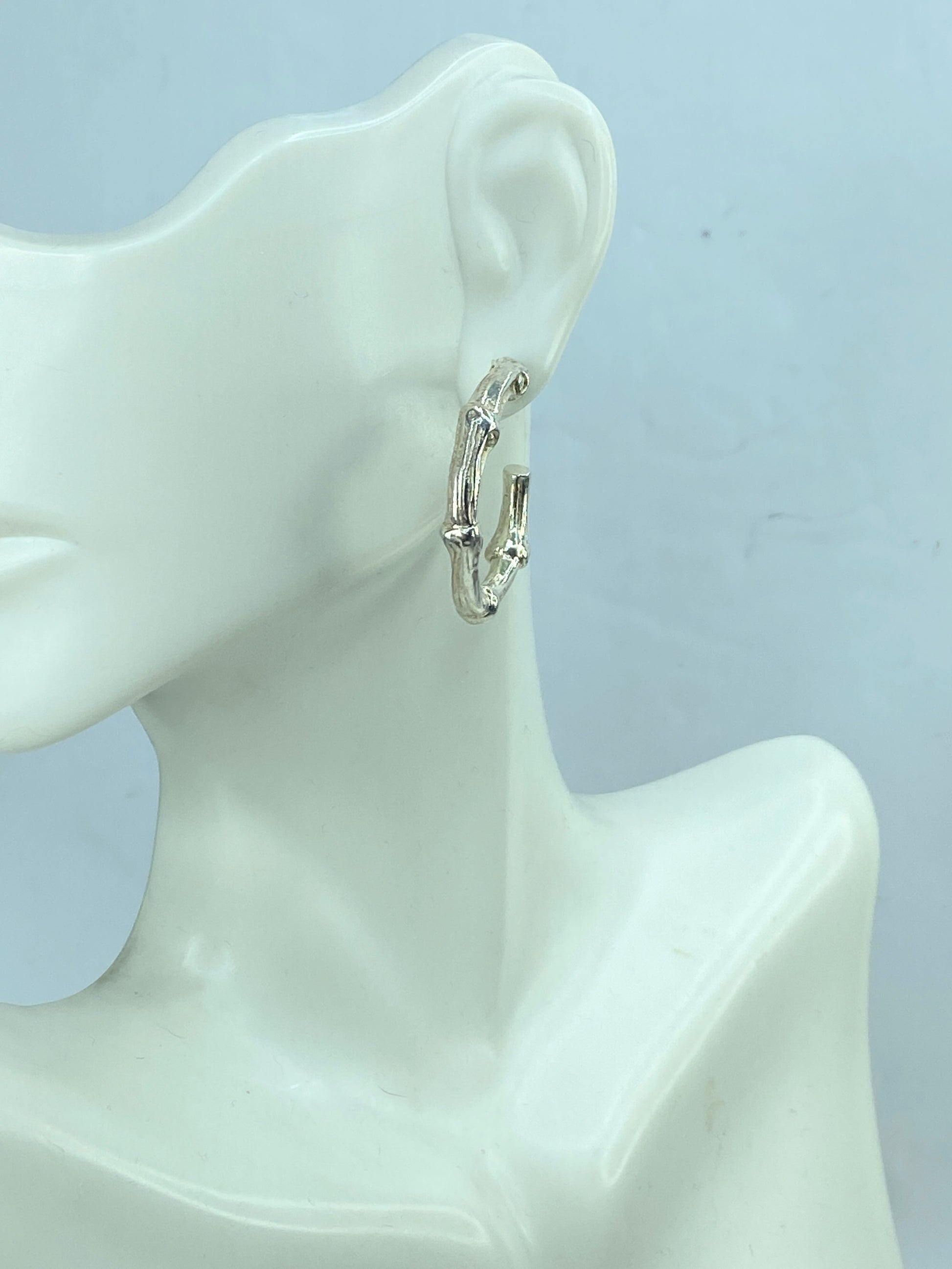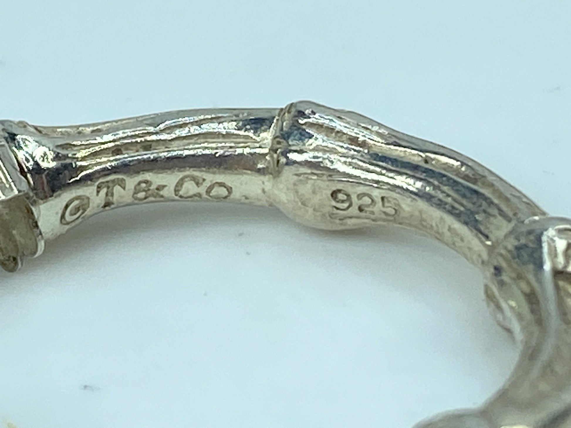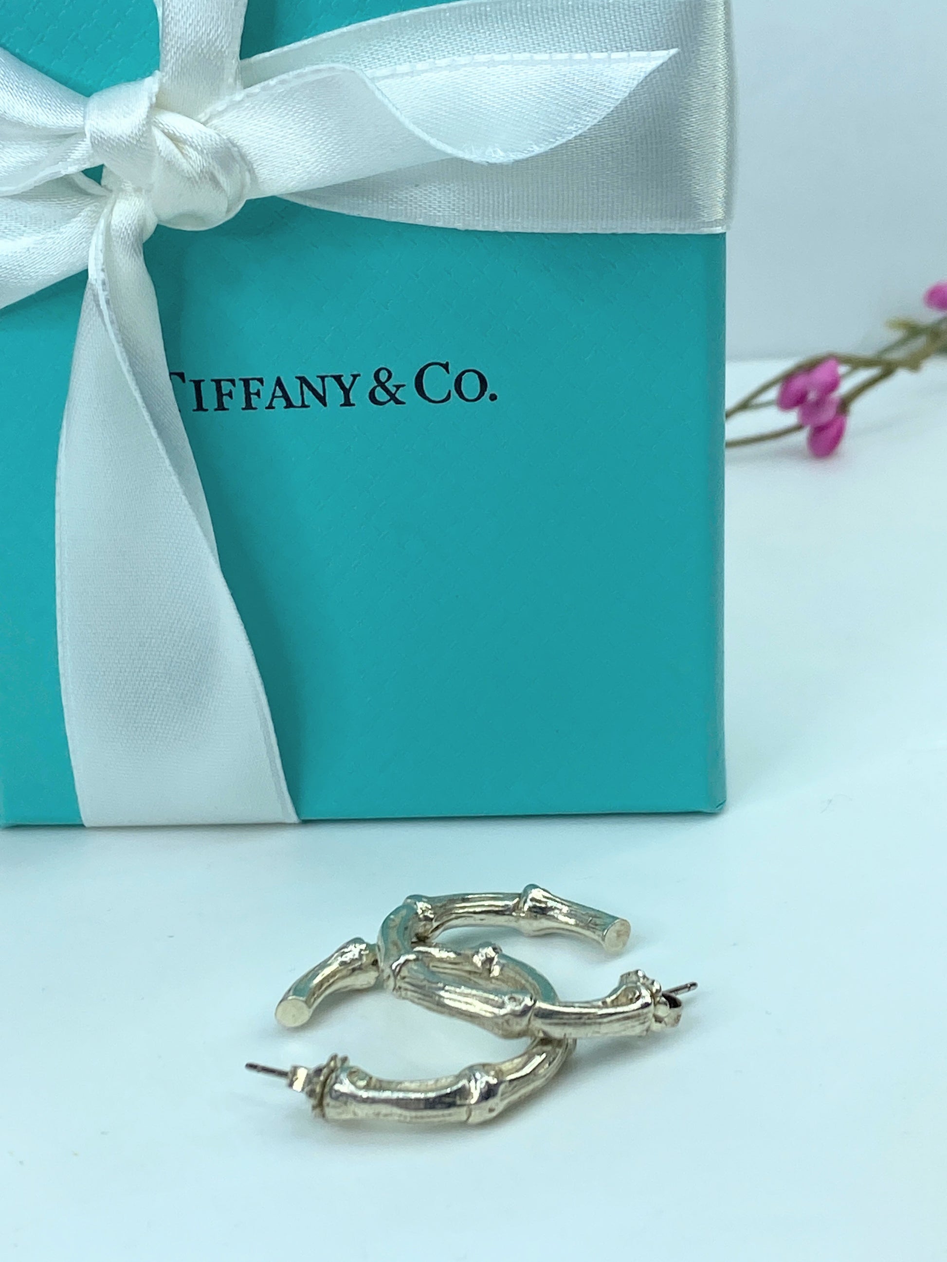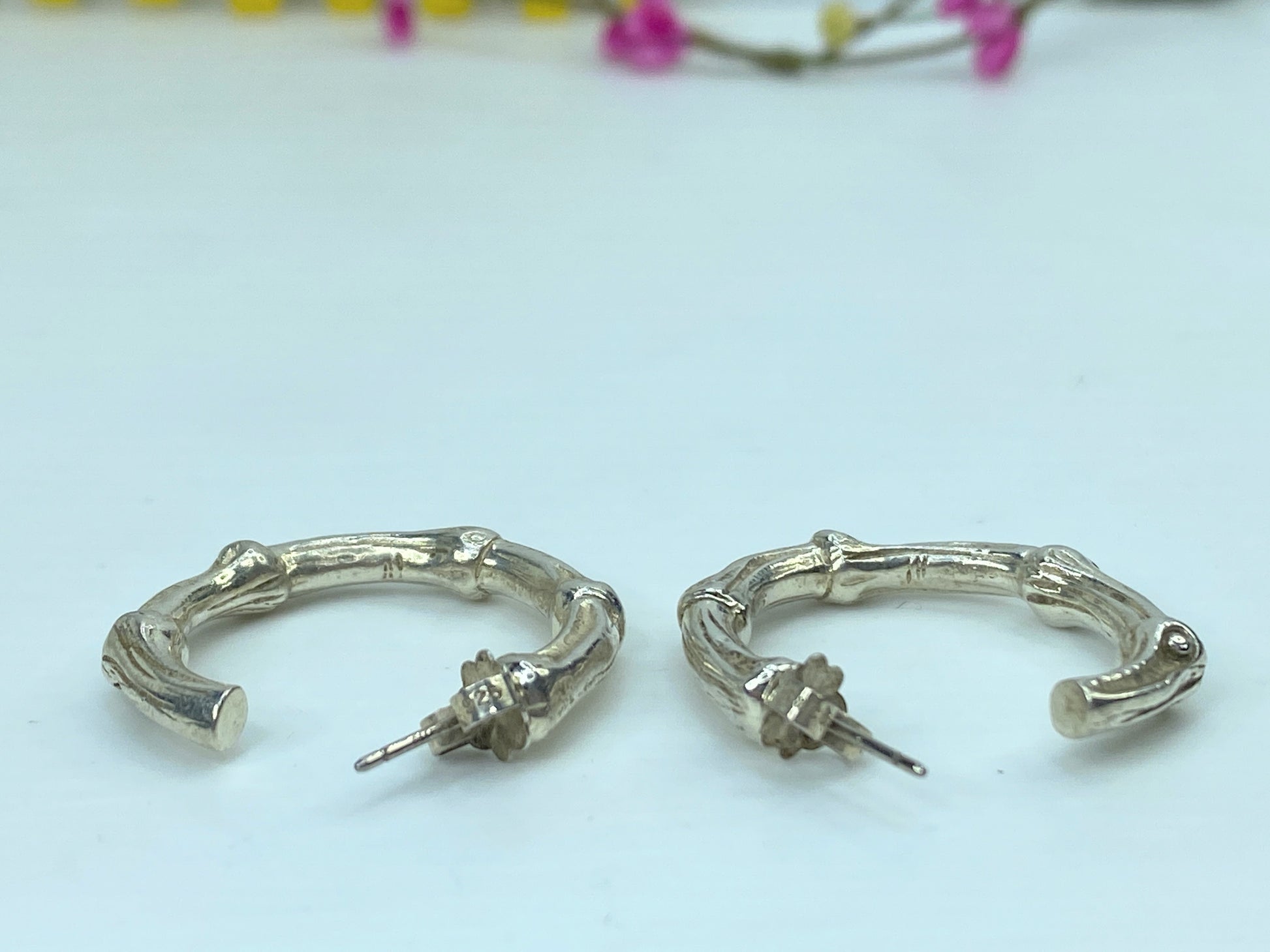 Tiffany & Co Sterling Silver textured Bamboo Earrings Hoops 1 1/8" JR750