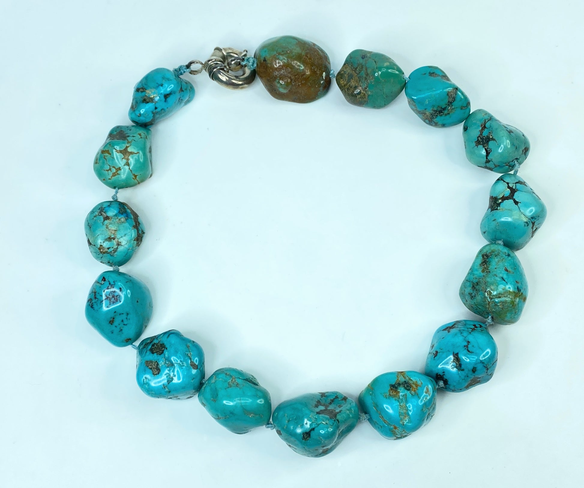 Turquoise Nugget Sterling Silver Necklace - Handmade Native American 24" JR977