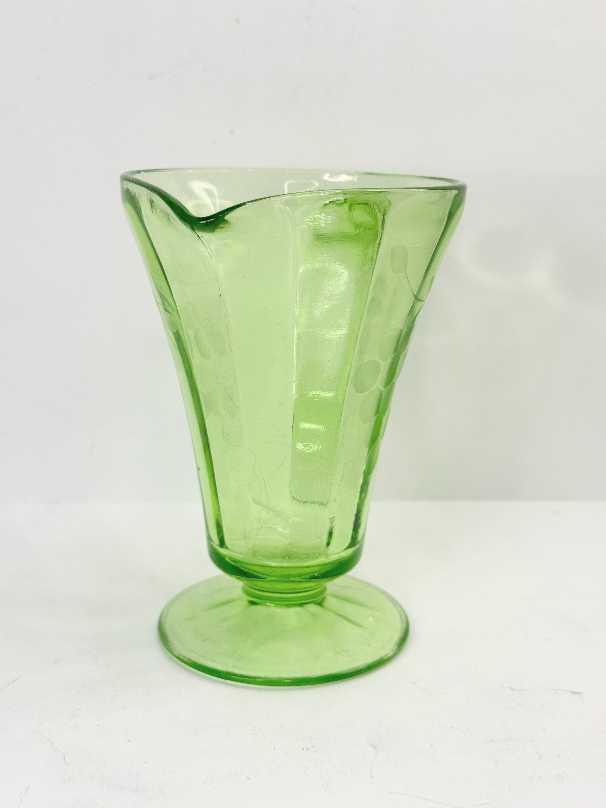 Uranium Glass Green Standard Grape Footed Creamer UV GLOWY GLASS A504