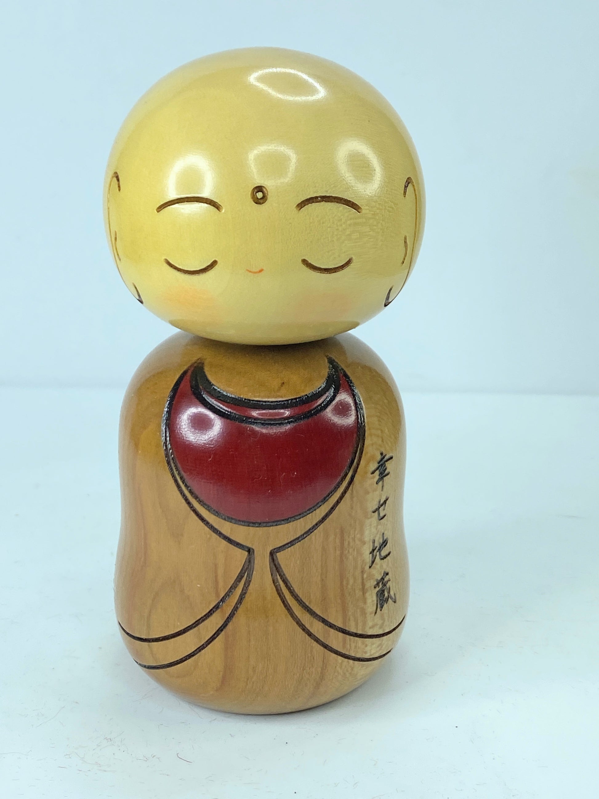 Usaburo Happy Jizo Original Kokeshi Wooden Doll 12.5 x 5.5cm Craftwork box A350