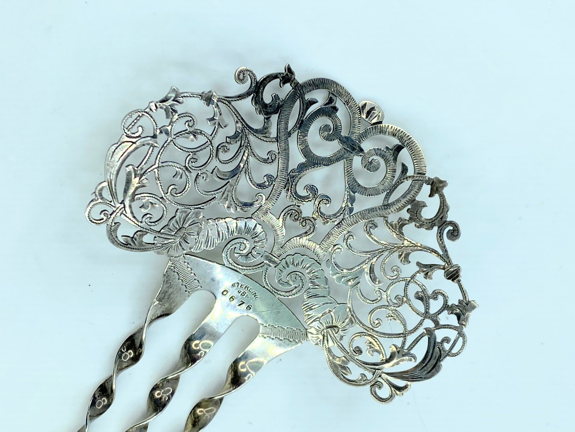 Victorian Hair Comb Sterling Silver Finely Pierced Hair Accessory 5 3/8" SS108