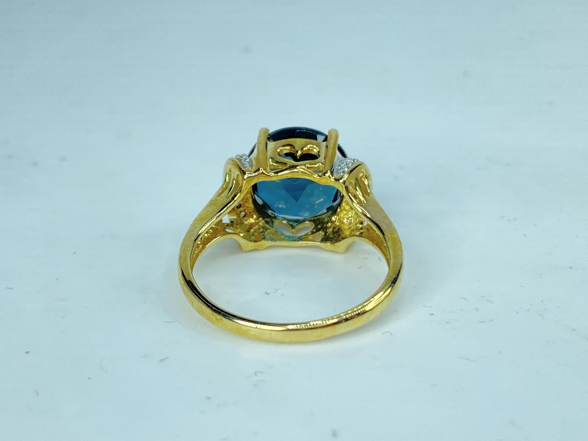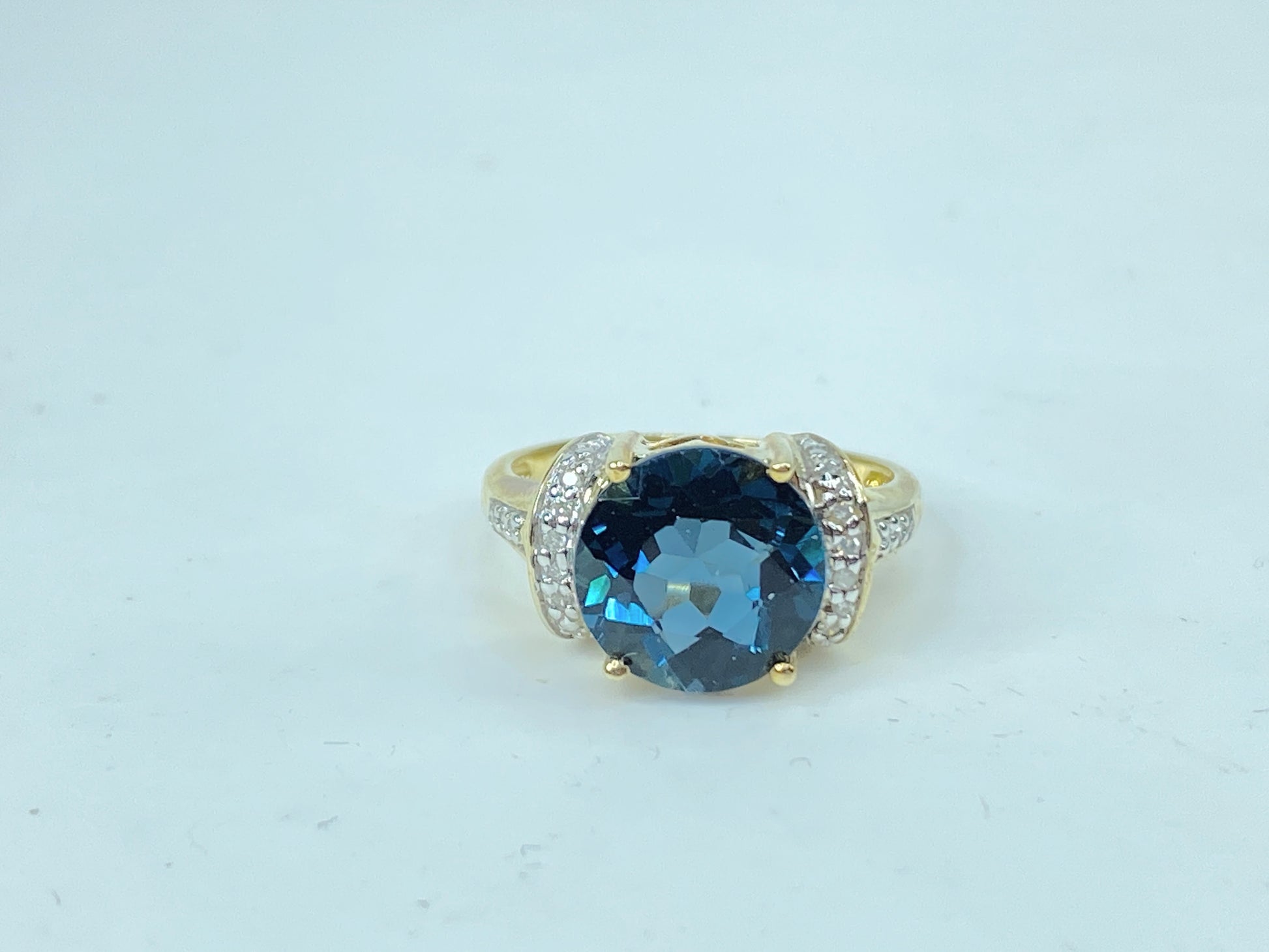 Vintage 10 Karat Yellow Gold Blue Topaz and Diamond 3.5g s6 JR985