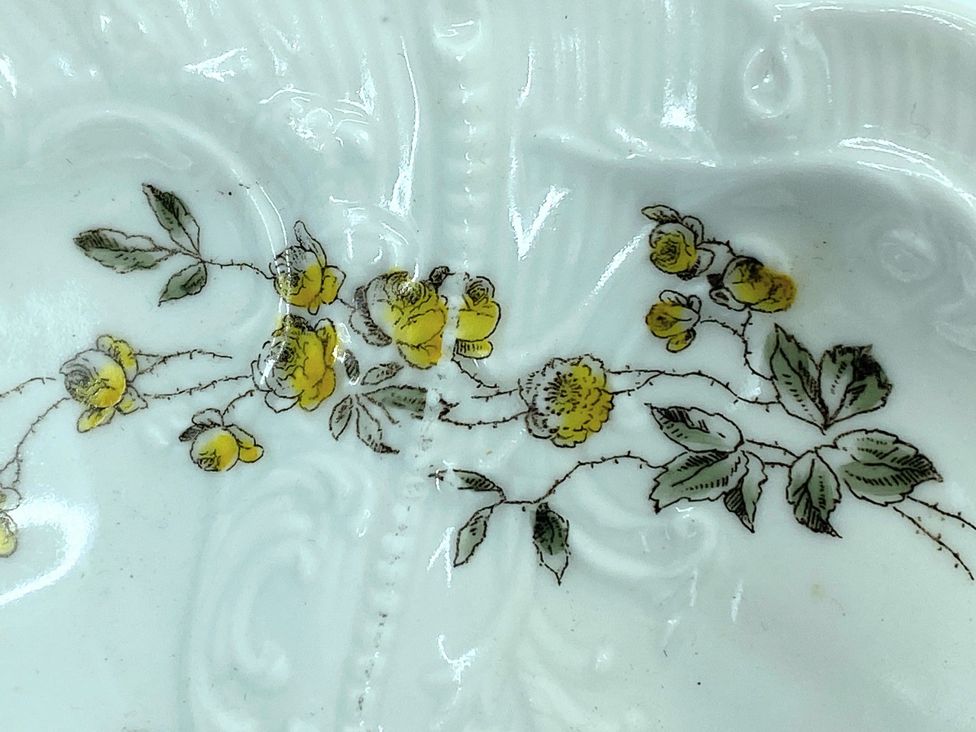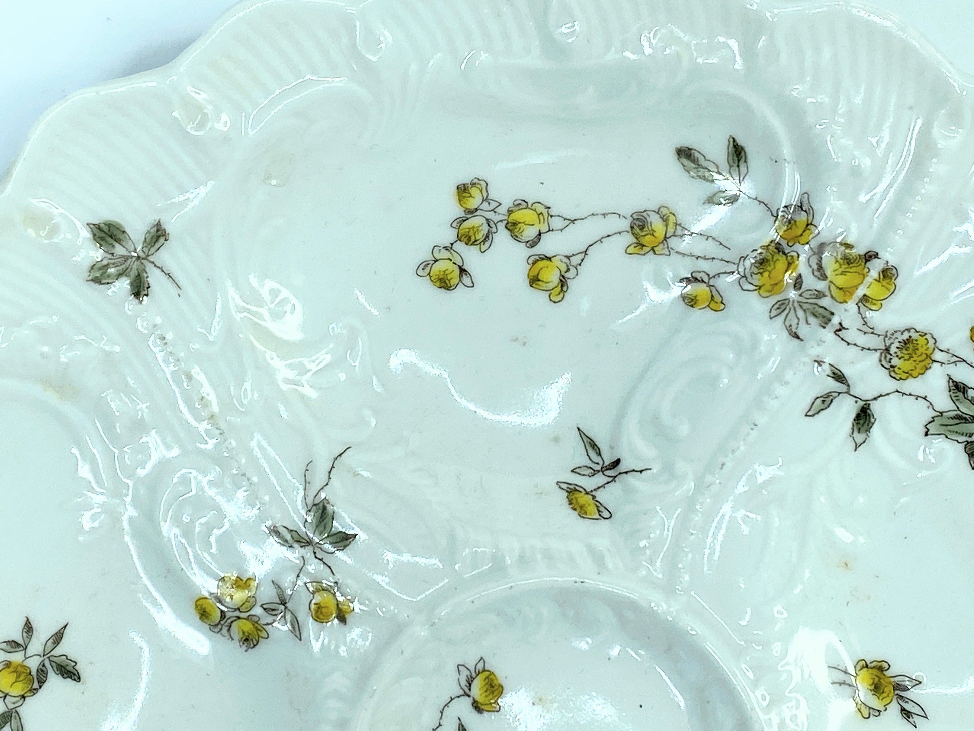 Vintage 1880s German Oyster Plate 5 well Yellow roses flowers adornment