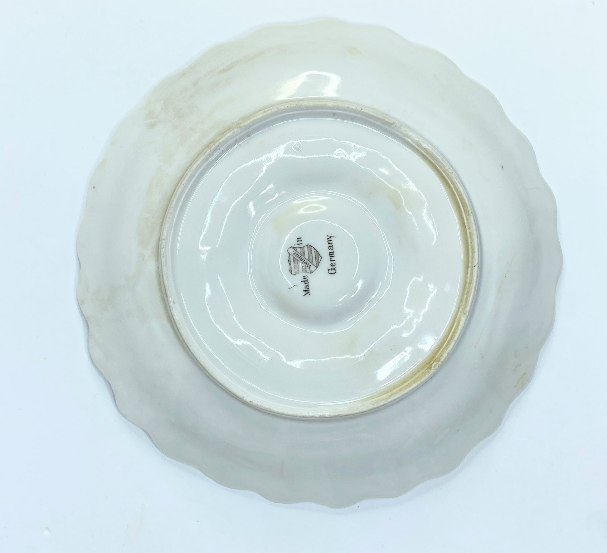 A hand-painted 19th-century porcelain oyster plate with a dainty alpine flower motif.