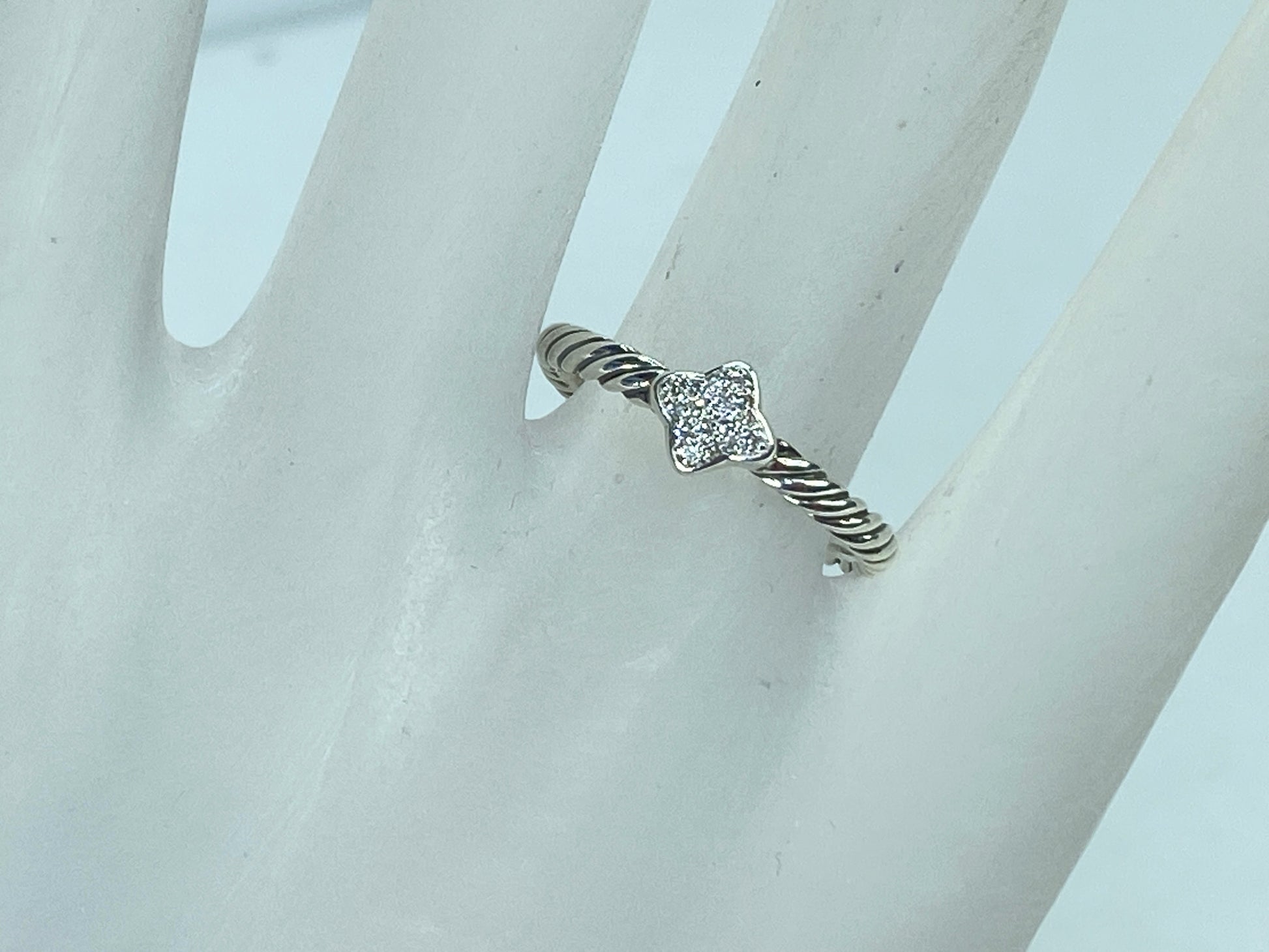 Vintage David Yurman Sterling Silver Diamond Quatrefoil Ring s8 JR1083