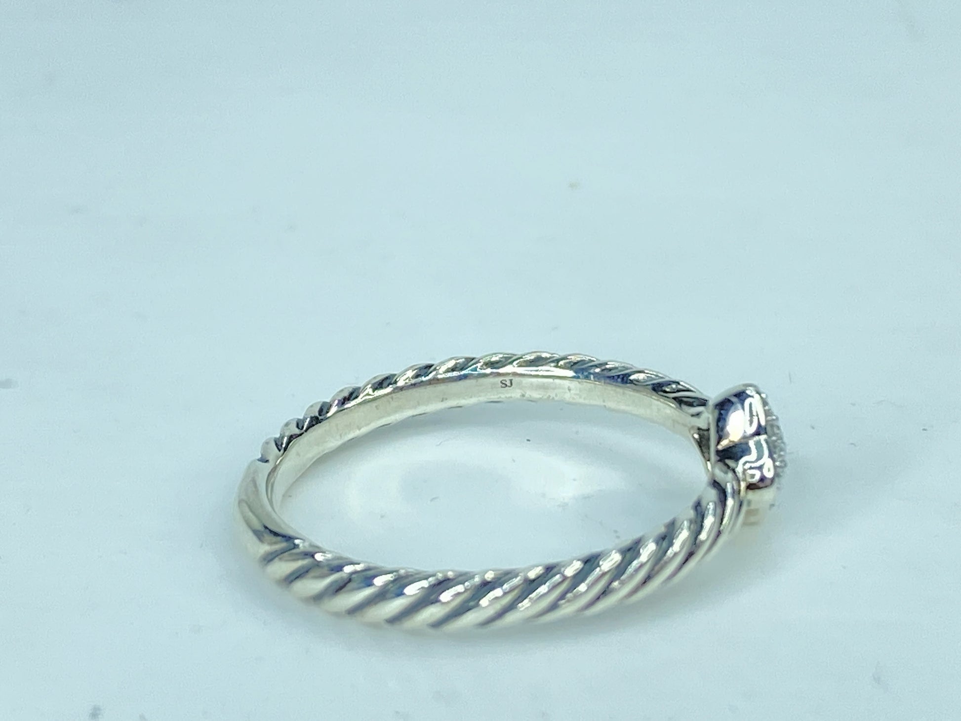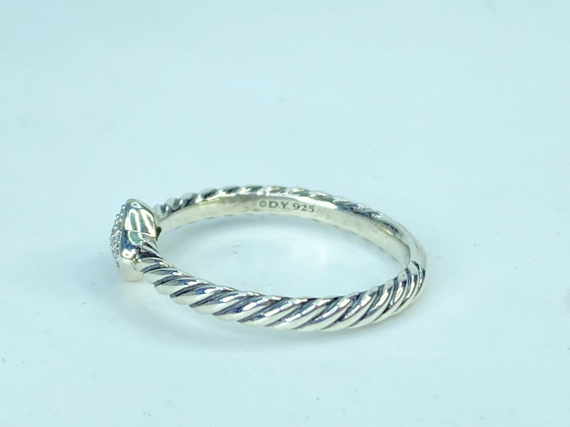 Authentic David Yurman cable ring crafted in sterling silver, featuring a pavé-set star motif at the center. The twisted cable band showcases Yurman’s signature sculptural design, making this a timeless and elegant stacking ring. Hallmarked © D.Y. 925. A beautiful everyday piece with classic Yurman styling.