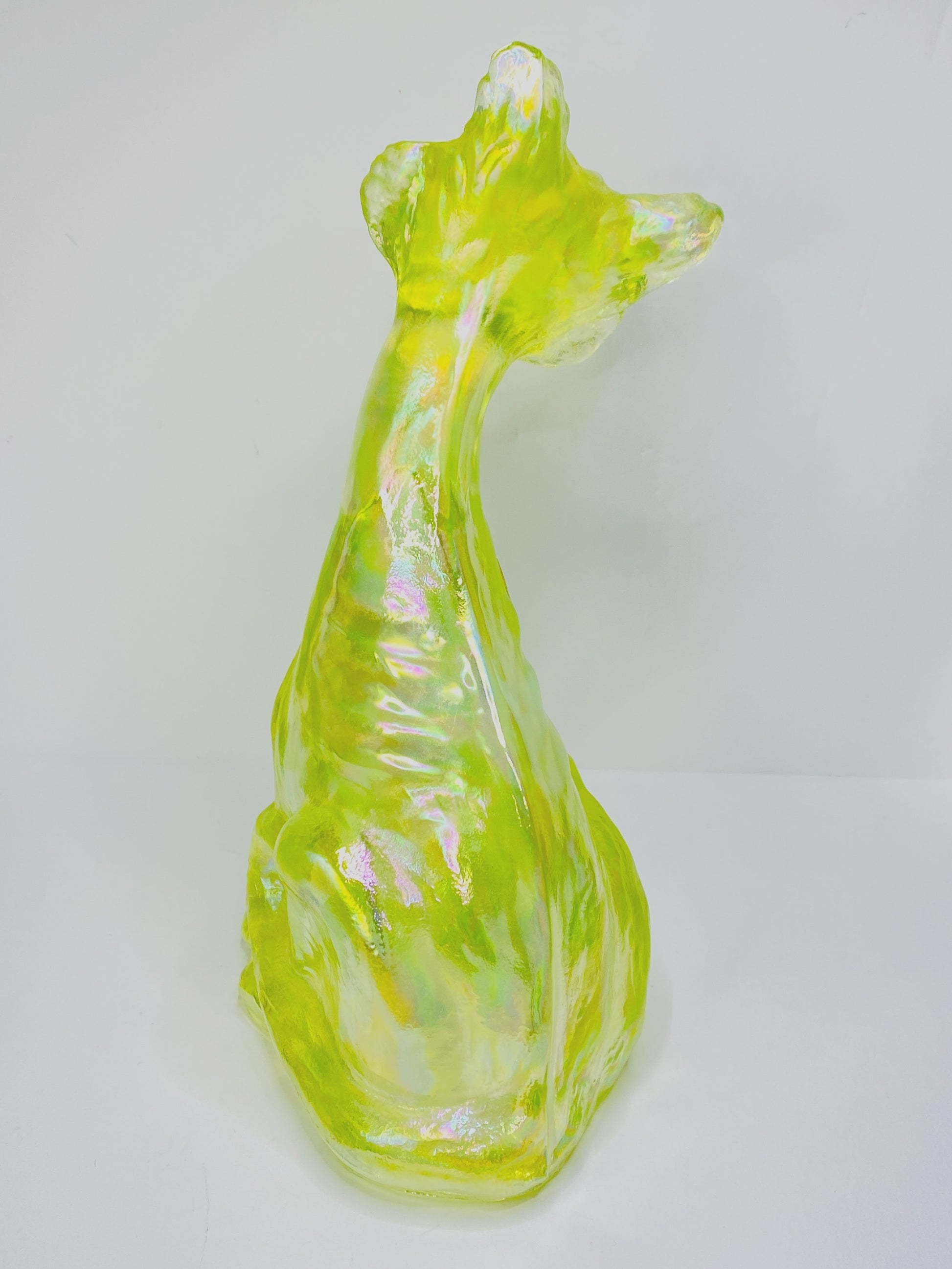 Vintage Fenton Vaseline Topaz Alley Figurine, 11" Tall, Signed Label A675