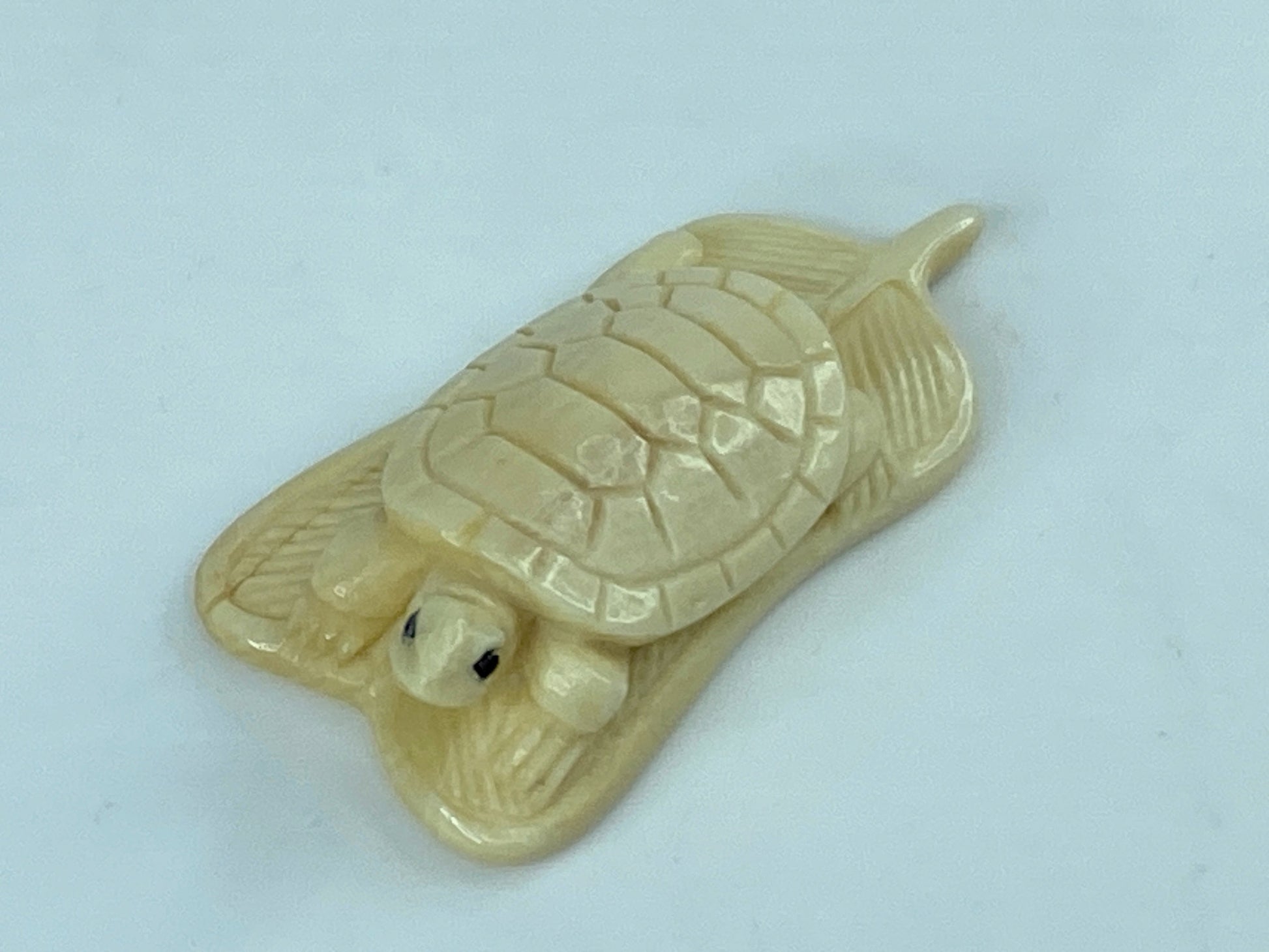 Vintage hand carved Resin Netsuke "Turtle on fan" 1 1/4" GS560