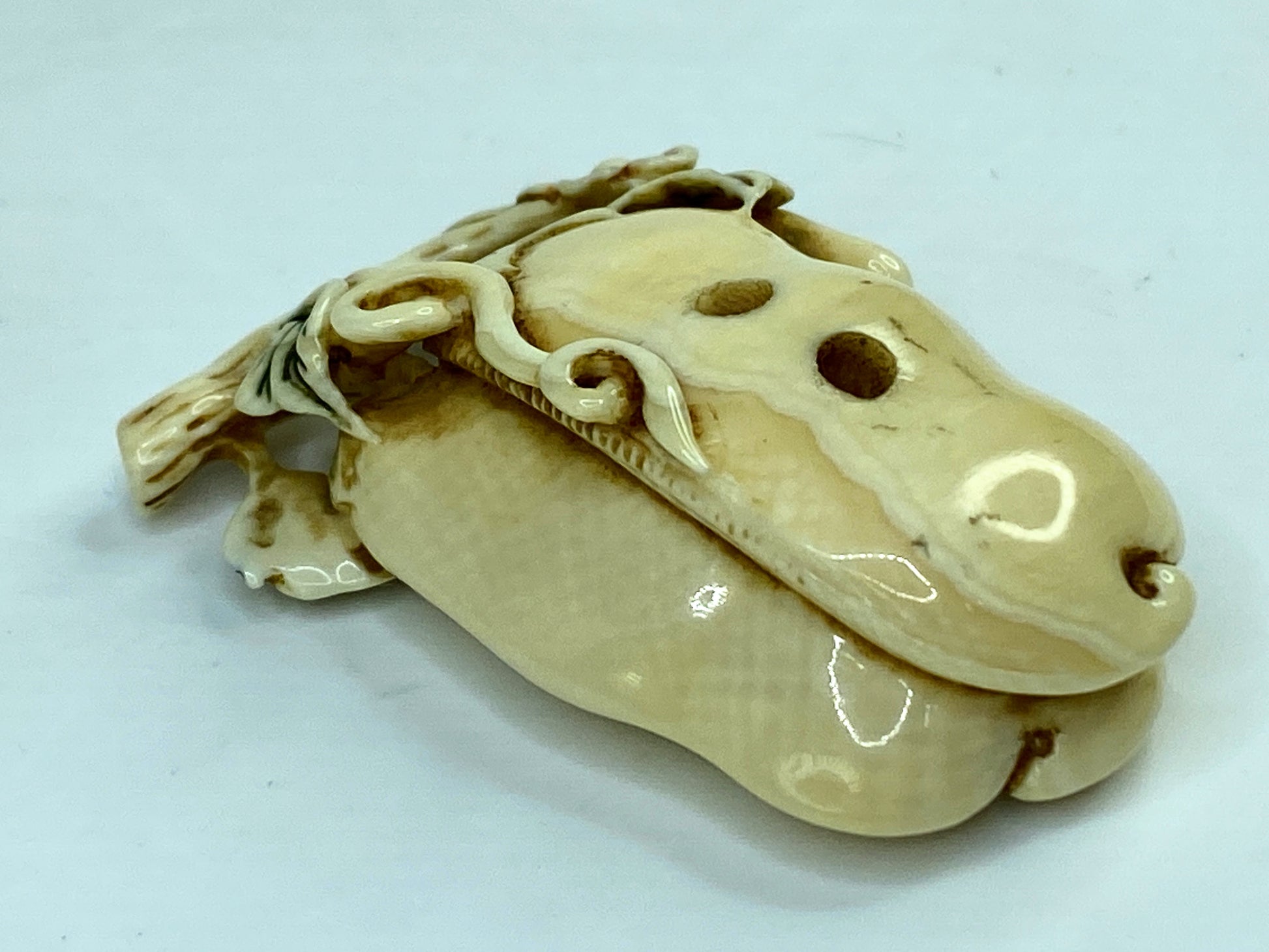 Vintage Japanese carved Resin Netsuke vegetable squash plant on vine A592