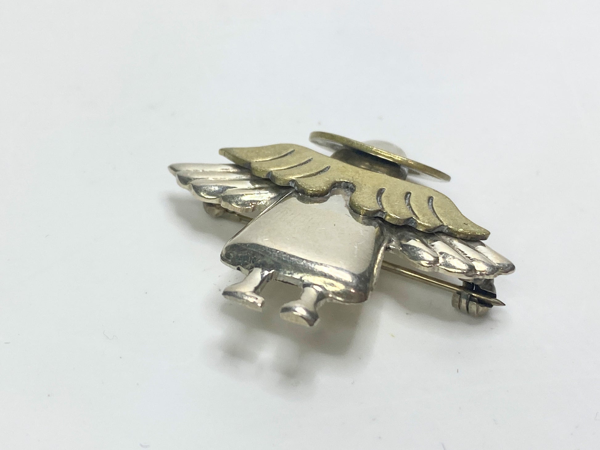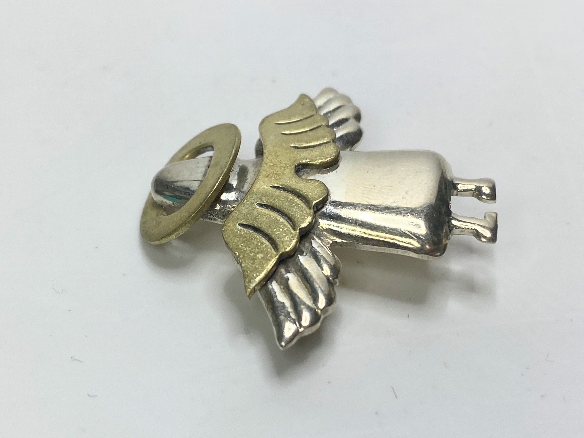Vintage Sterling Silver & Brass Angel Brooch, 7.1g, 5/8” x 1.5” JR1116