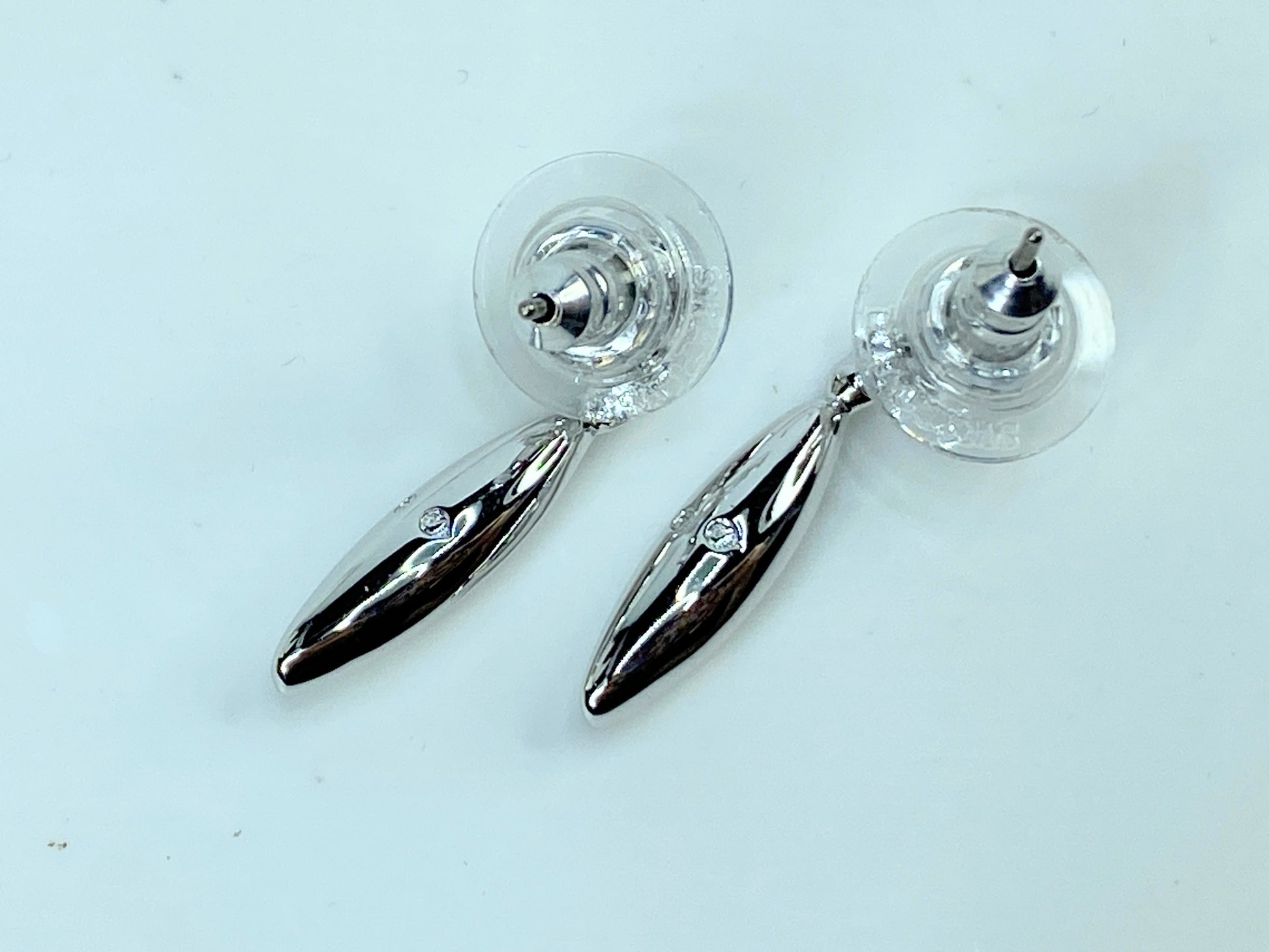 - These vintage Swarovski silver-tone dangle earrings showcase brilliant crystal accents set in a polished silver-tone finish. In like-new condition, they hang with a refined 1.0-inch drop that works beautifully for both daytime and evening looks. A hallmark is positioned on the back, signaling authenticity and a touch of vintage provenance. Perfect for adding a touch of classic glamour to any outfit, from office ensembles to evening attire. Elegant, versatile, and easy to wear, these earrings make a refined statement without overpowering the wearer. Care: wipe gently with a soft cloth and store in a dry, protective jewelry box.