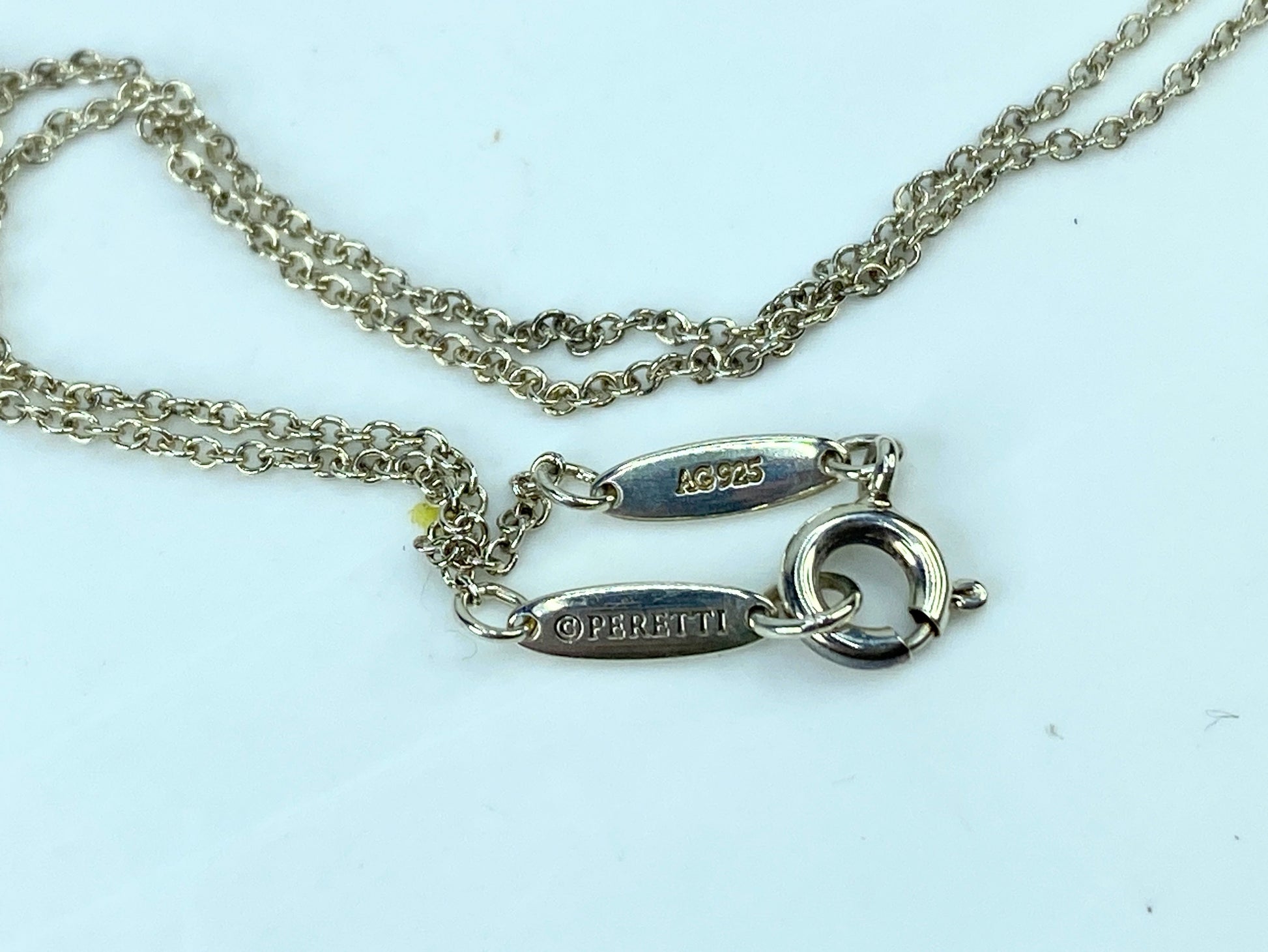 Hallmarks: on the chain are SPAIN, 925, Elsa Peretti, Tiffany & Co.