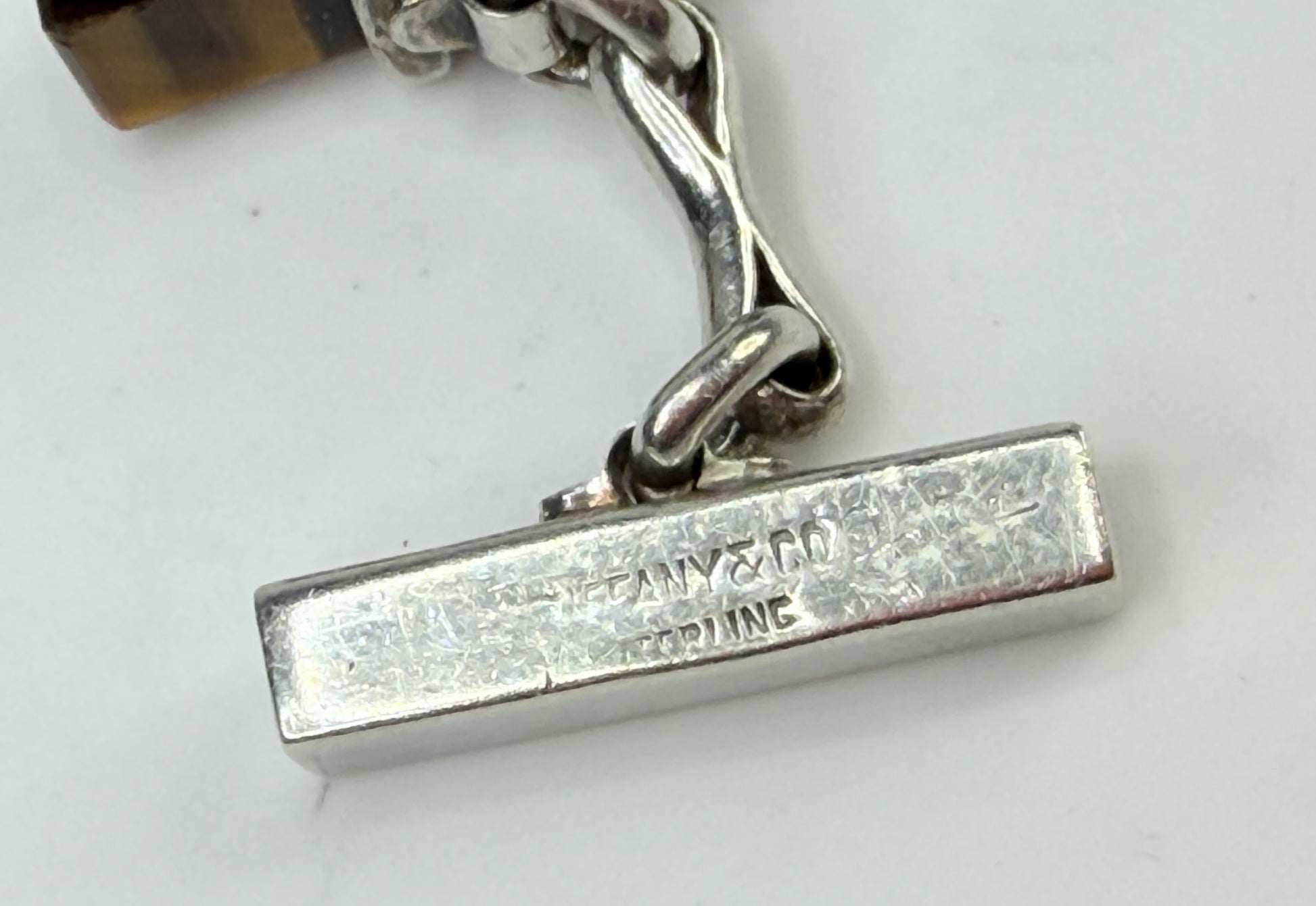 Vintage Tiffany & Co Sterling Silver Tiger Eye Bar Cufflinks 13g SS223