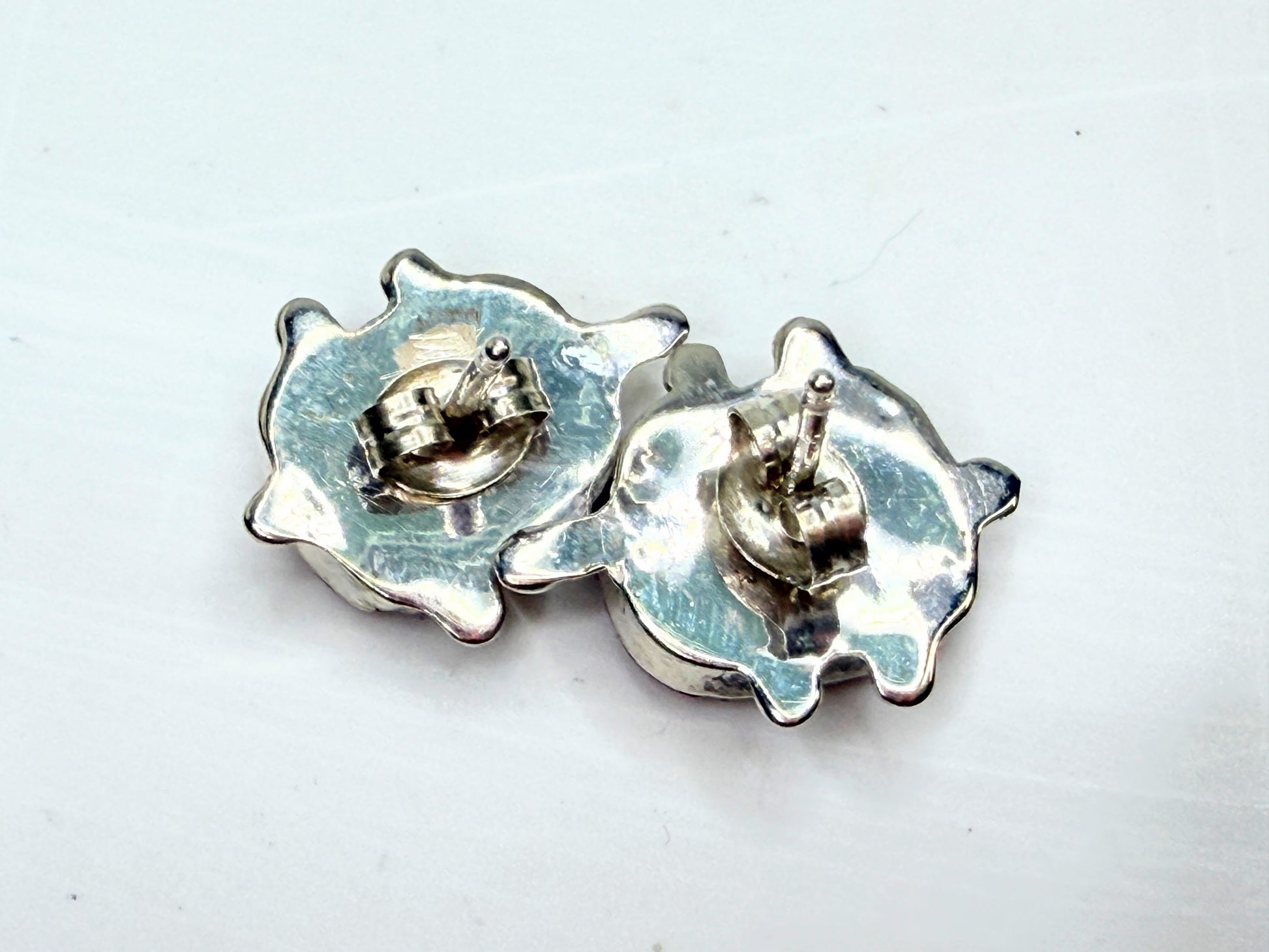 Zuni Sarah Bowannie Sterling Opal inlaid stone new old stock earrings JR1333